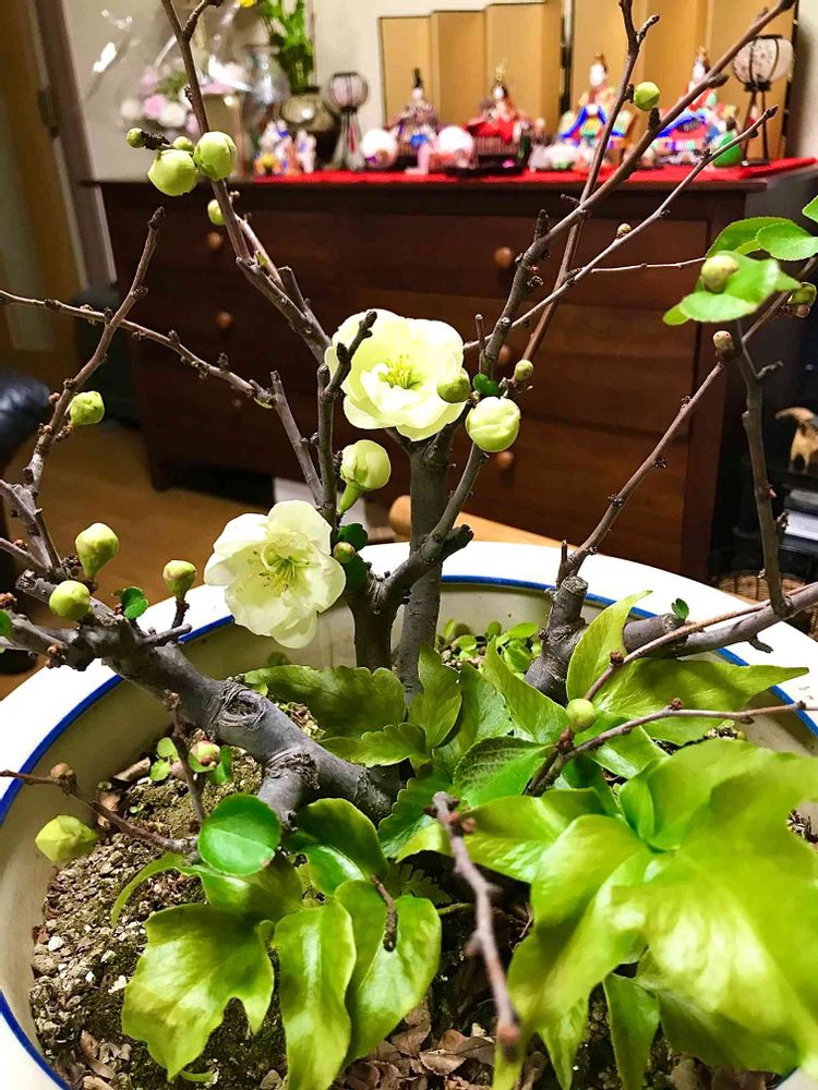 この時期になると、梅やボケの盆栽が出回ってきますが、