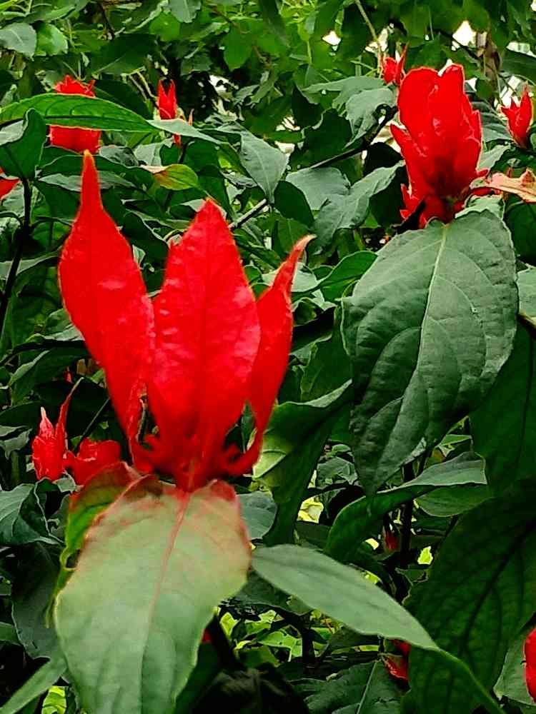 キツネノマゴ科で、赤の部分は苞(ほう)と言って蕾を包むガクみたにな物みたいー!多分、ここから花が出るんだろうねー!