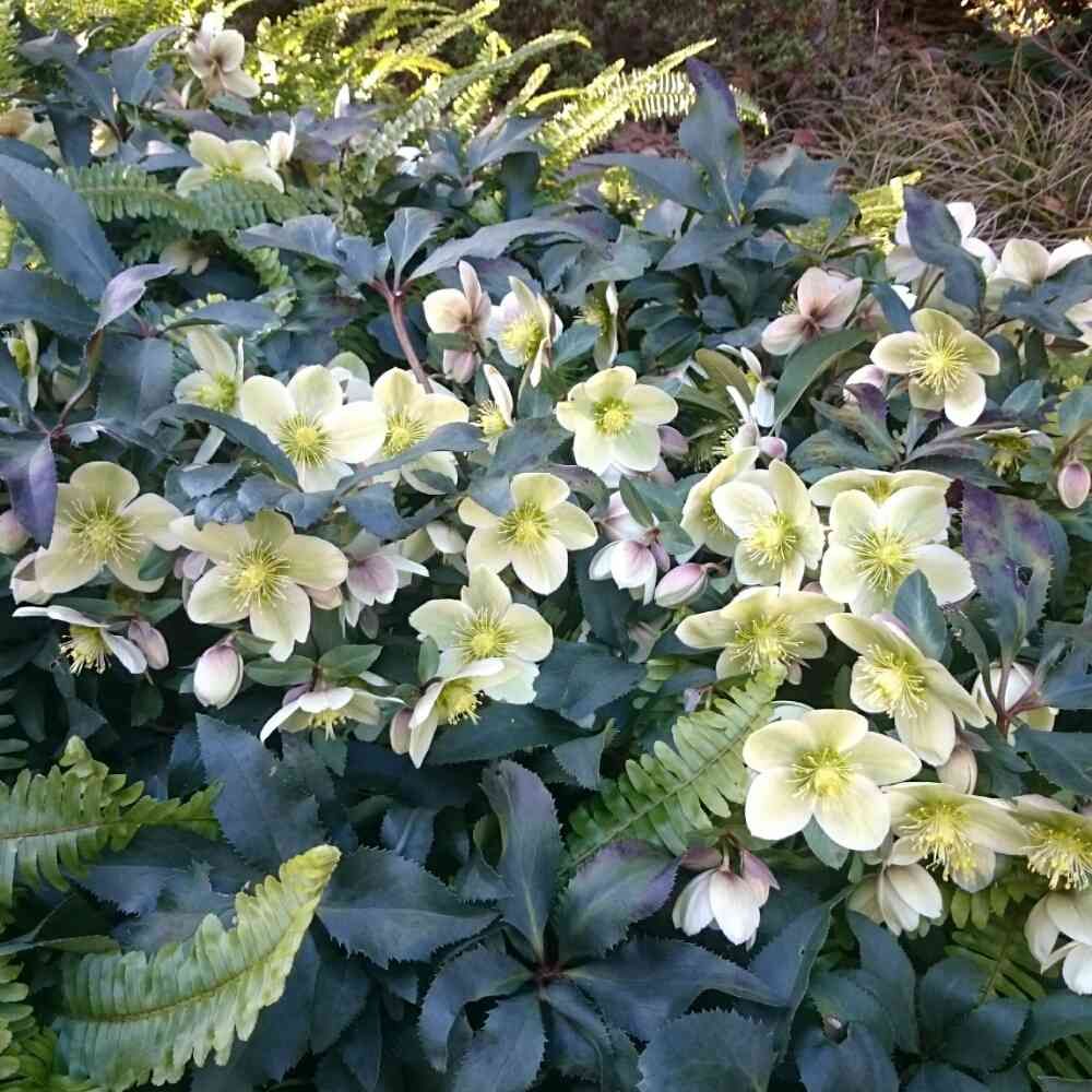 昨日の音ノ葉さん併設cafeのシェードガーデン、玉シダとクリスマスローズの組み合わせが素敵💕