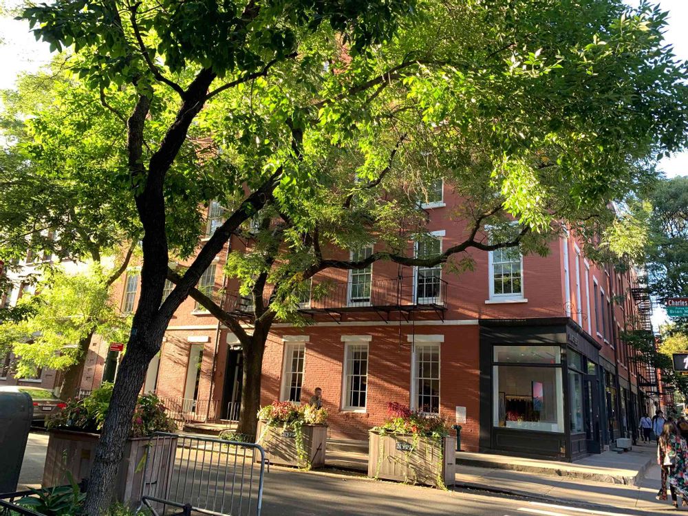 ふと見上げると、視界いっぱいに輝く緑が赤レンガに映えていました。マンハッタンのウエストビレッジ界隈は建物や石畳がお洒落で、ずっと散歩していたくなります。