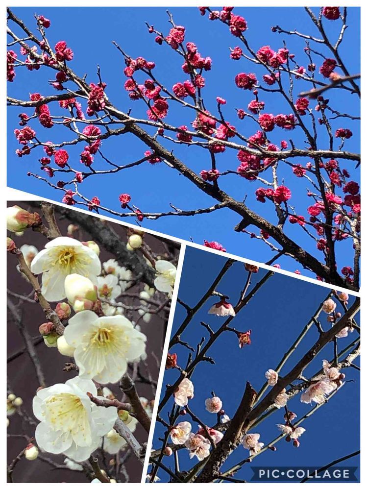 青空に誘われて撮った梅三色❤️🤍🧡
