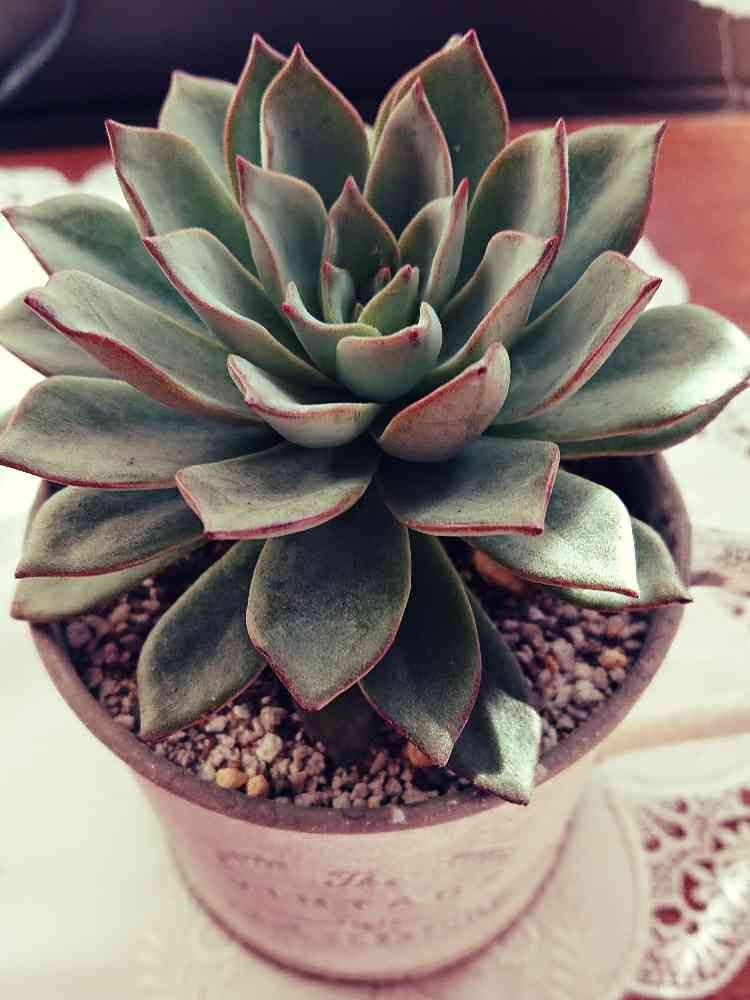 ずーと家でお留守番していた多肉ちやん(エケベリア デレンオリバー)の縁が赤くなってステキになっていました🌱🌵💕