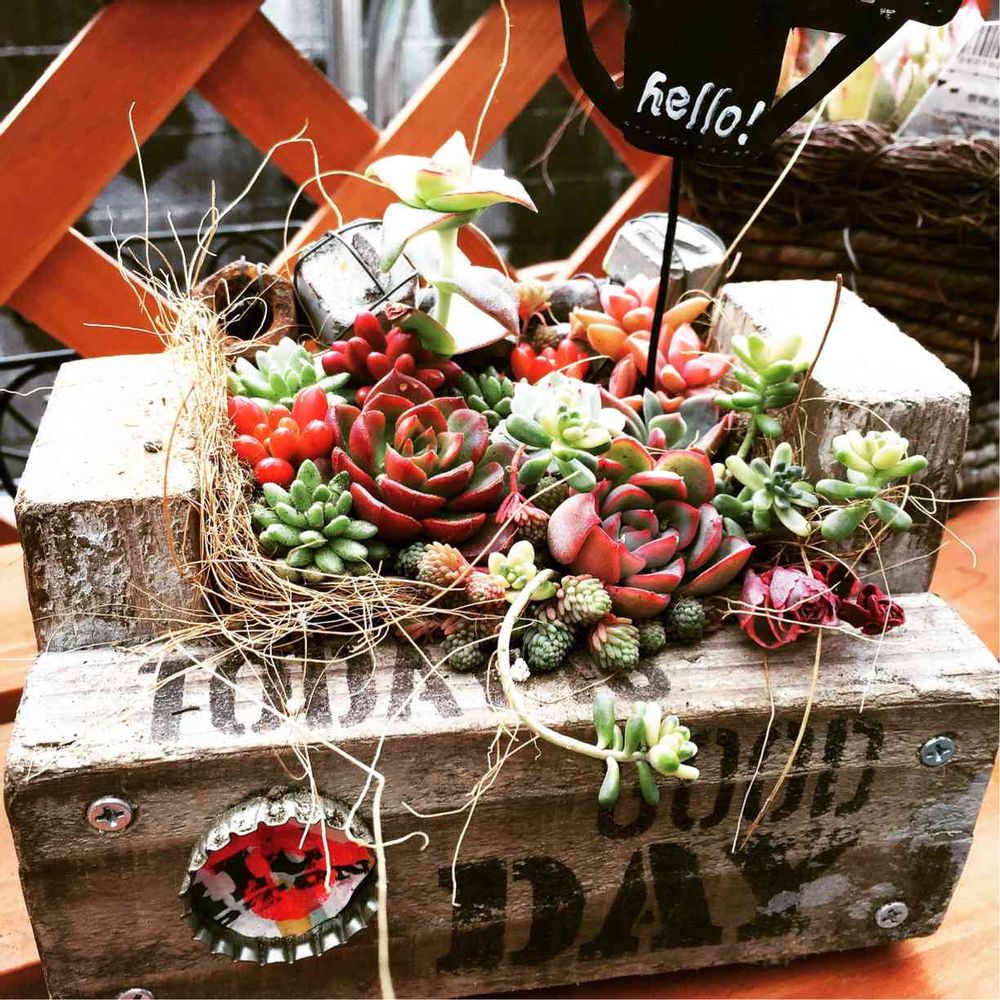 すごくかっこいいウッドプランターに多肉ちゃんがいい感じに入ってる~😍💓紅葉シリーズ良いわぁ❤