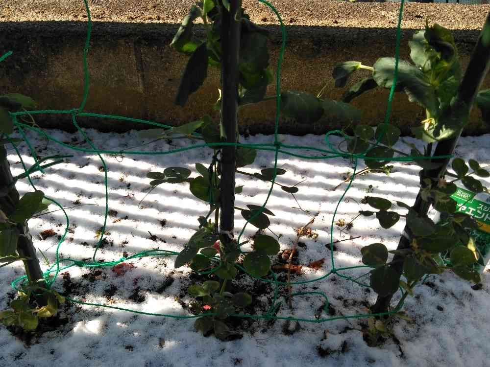 サヤエンドウも今季2回目の雪です!
