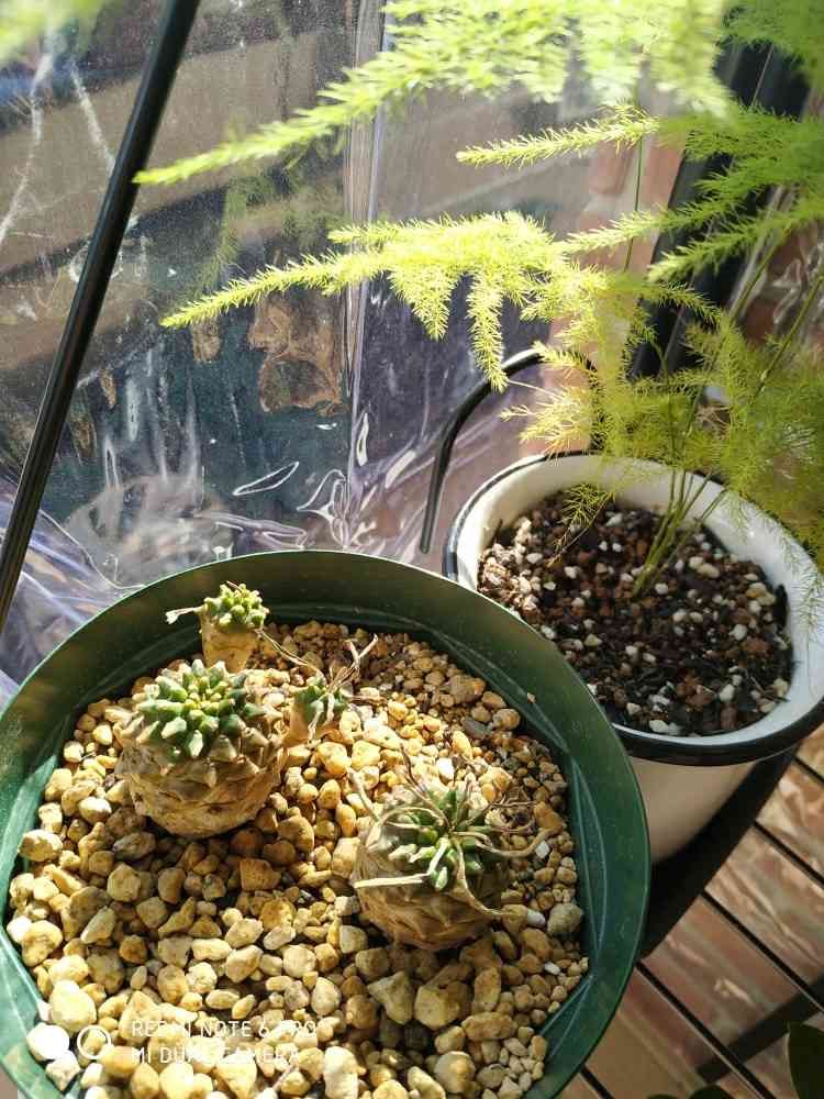 寒さで葉🌿を枯らしてしまった峨眉山😅…最近室内管理に変えたんだけど、今日はアスパラちゃんと一緒に外で日光浴です🤗