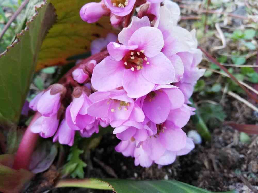 ご近所さんから分けてもらいました。ピンクの可愛らしいヒマラヤユキノシタです。花のない今ごろにはうれしいですね✨