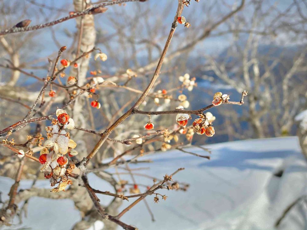 ツルウメモドキが野鳥にも食べられずフリーズドライになってました❄️