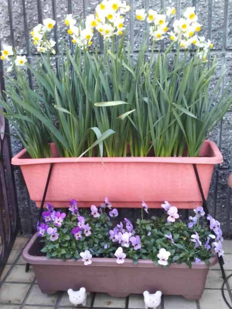 日本水仙とビオラ(ラ・ヴィオラ 3倍咲く)です🌼🌺🌼🌺