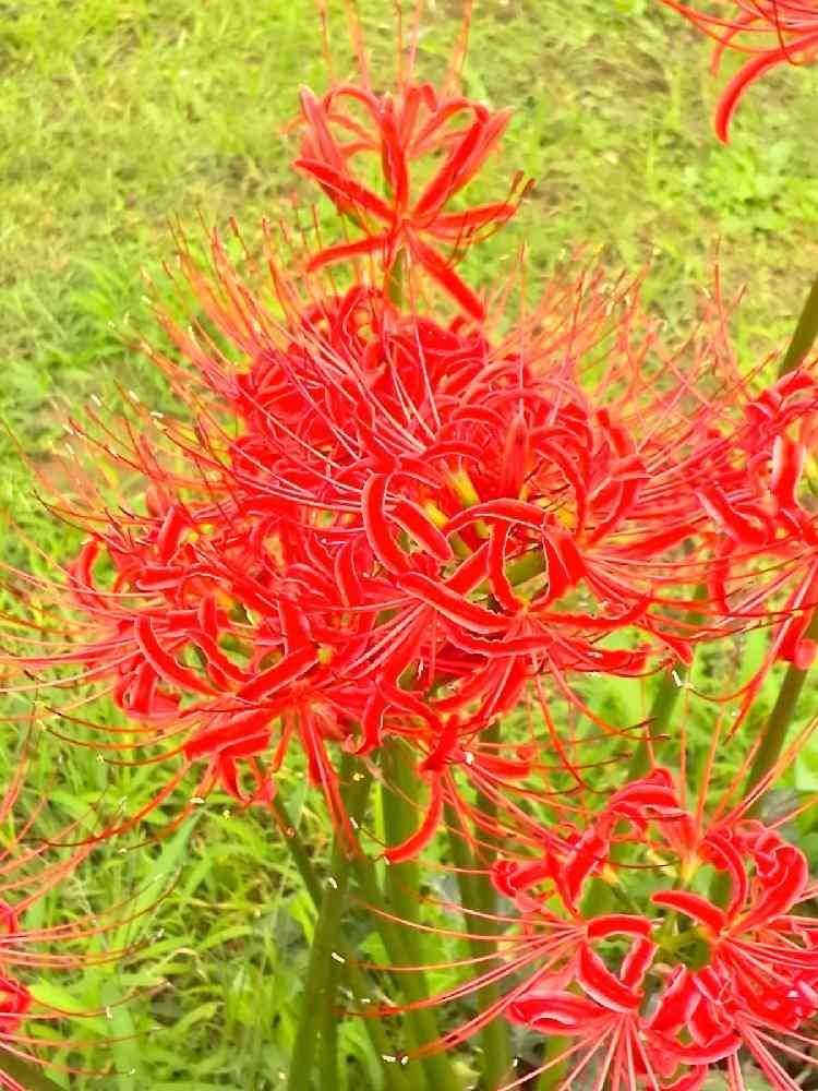 彼岸花が咲き乱れていたので、通りすがりの見知らぬ親子に凝視されつつも写真を撮りました(笑)