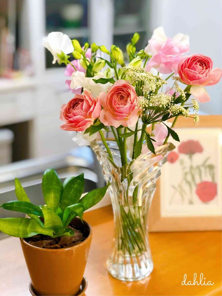 dahliaさんのキッチン,ラナンキュラス,レースフラワーの投稿画像