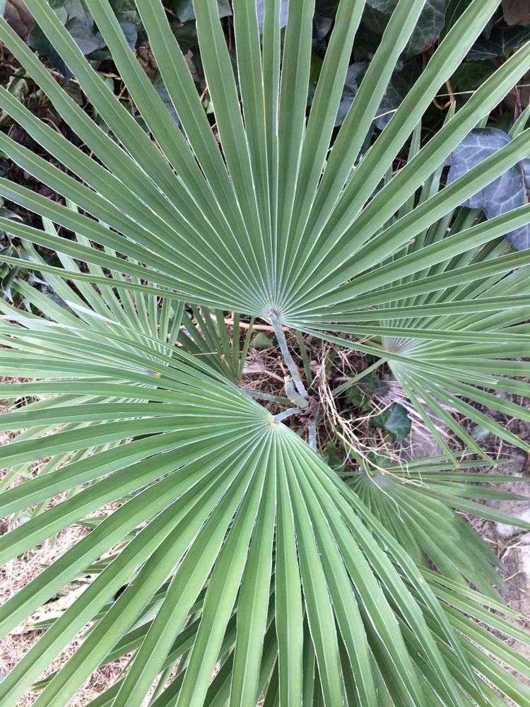 やっぱ下から見ると強烈な白さですが、表も普通の棕櫚より青く感じます。