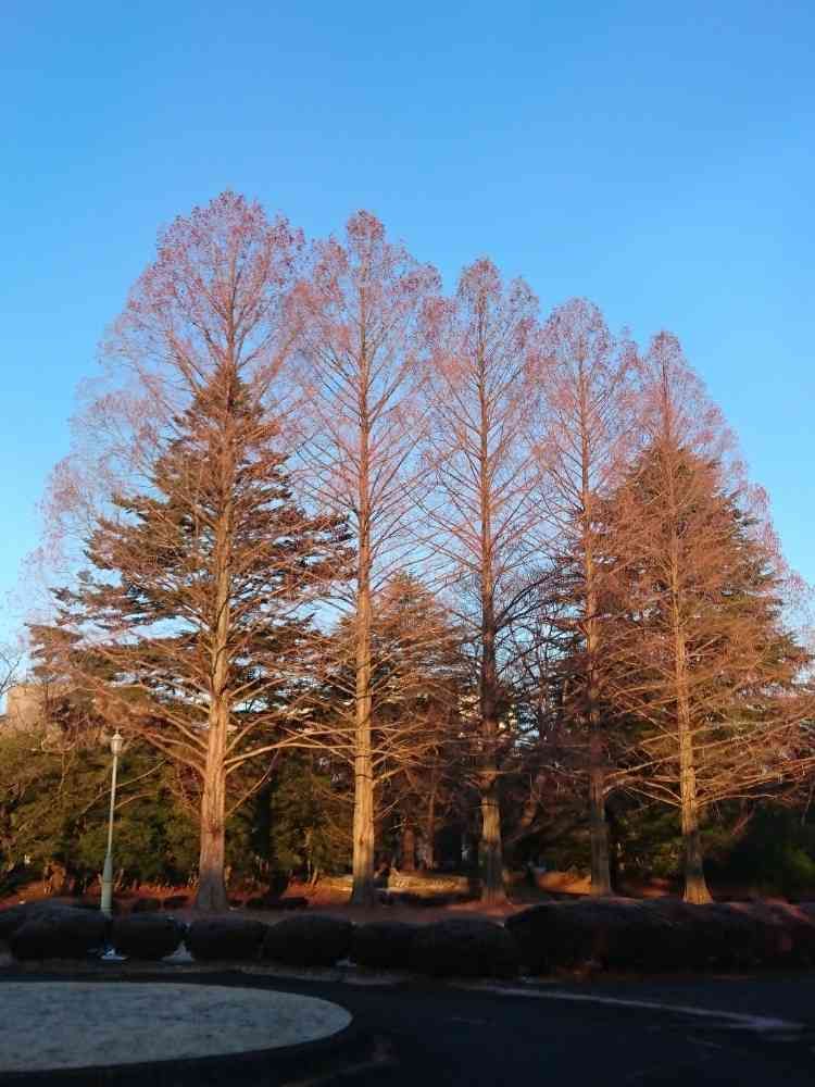 メタセコイアの葉が落ちて透けているので、その向こう側にあるヒマラヤスギの木が見えました!