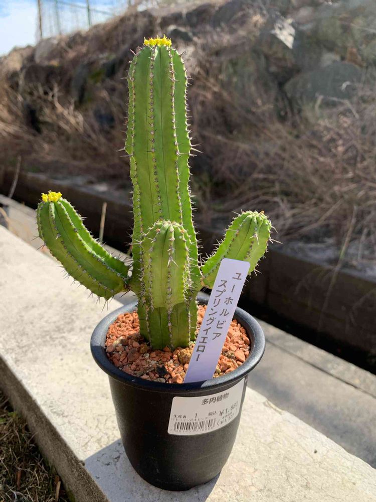 サボテンと思いきや、ユーホルビアスプリングイエローとの札が😅検索してもヒットせず、新種なのでしょうか😲