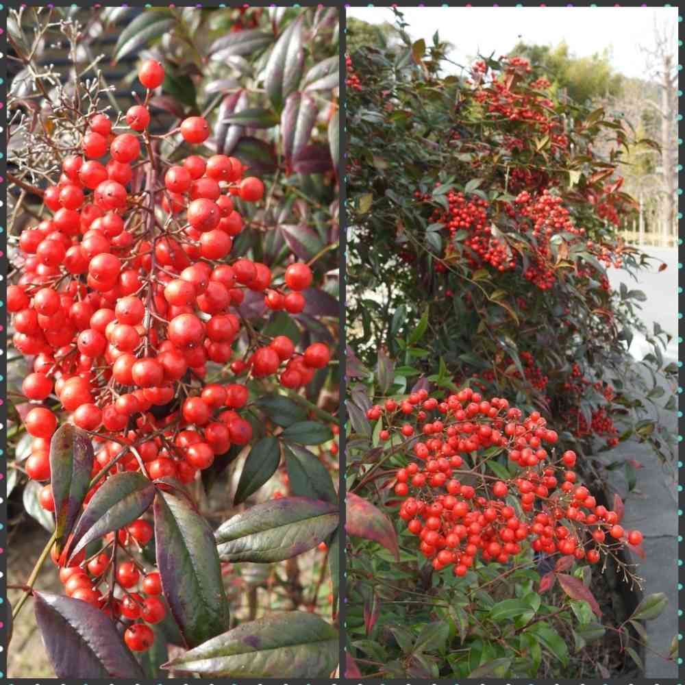 道すがら❗道路端で鮮やかな赤い実を着けたナンテン😃❣️