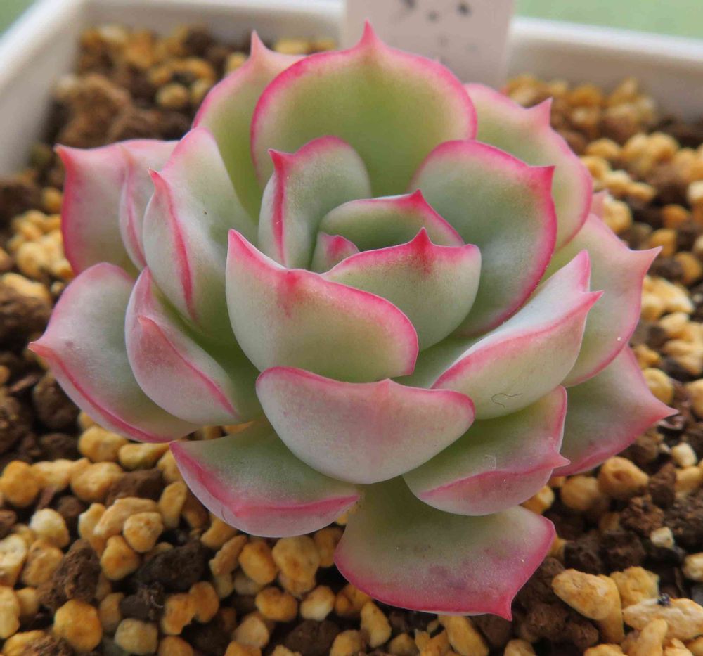 去年の夏、3つのうち2つが★になってしまった魅惑の月。生き延びたのは小さい株だったけれど、濃いピンクのエッジが際立って割といい姿になってきた。幸い、夏にダメ元で残しておいた葉からも3つほど葉挿しに成功した。