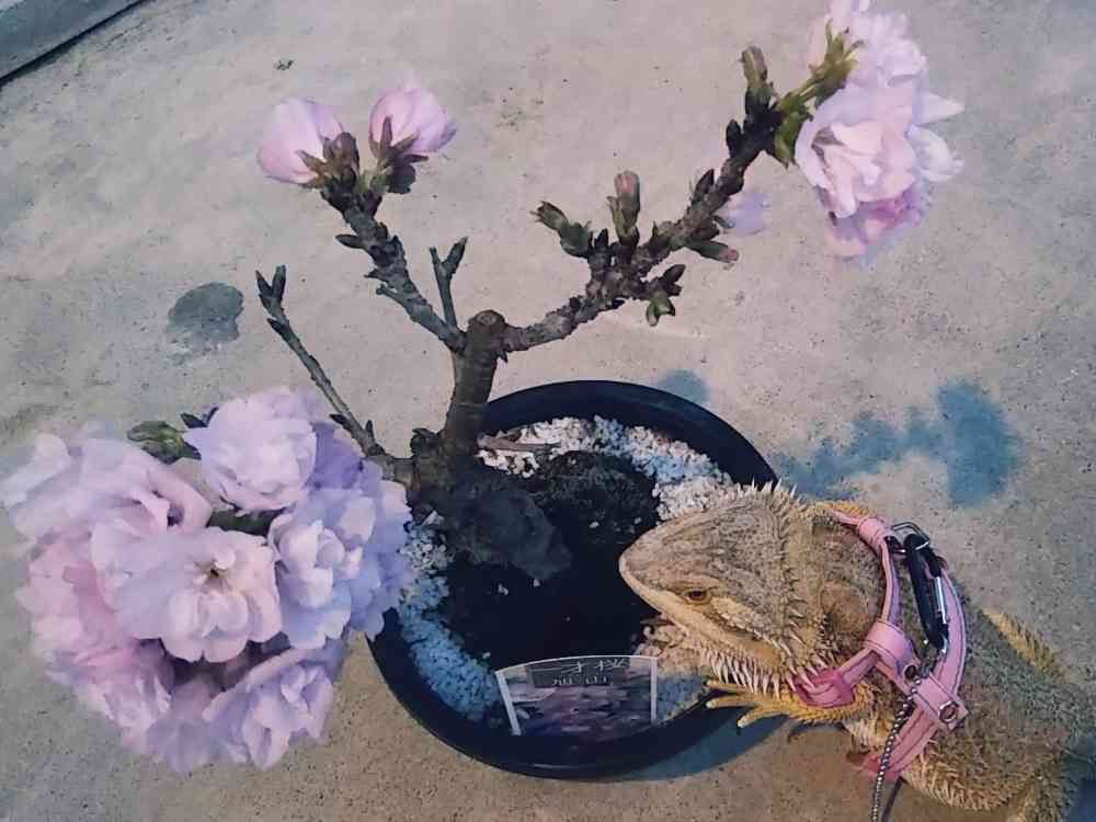 ウチのフトアゴヒゲトカゲとお花見🌸(▔罒 ▔ )w