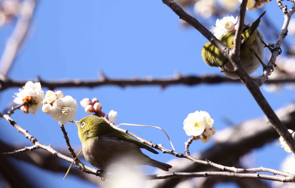 梅にメジロ絵になりますね🌺🐦🐦
