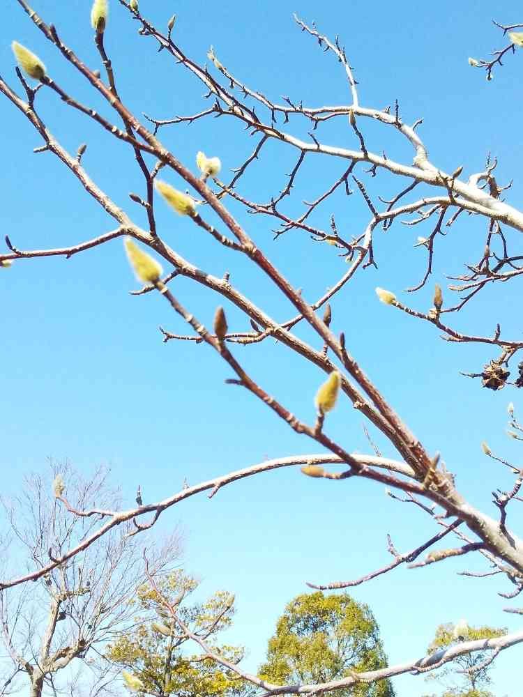 家の庭に、木蓮もコブシもありますが、コブシは葉がなく蕾がつきます。どちらの木も高くて蕾が良く見えないけど、コブシは花芽が付いてる時は葉っぱがないことでわかりますよ~