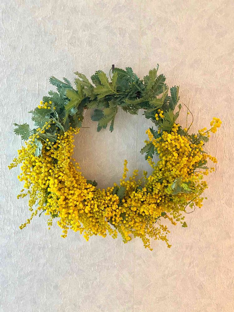 銀葉アカシア(ミモザ)だけのリース。