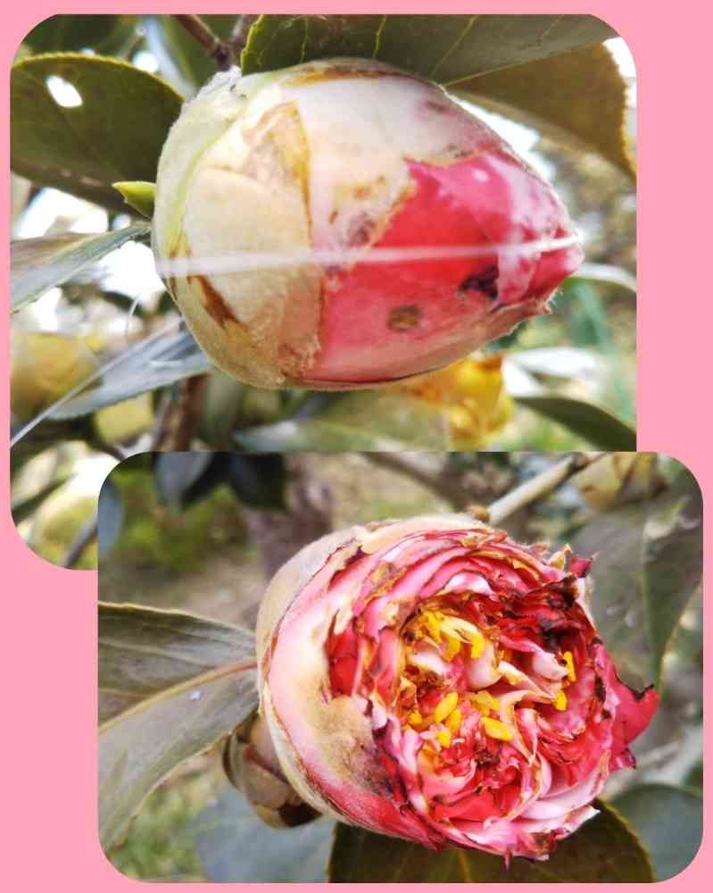 そんなに食べたのに、椿のつぼみまで〜〜😢