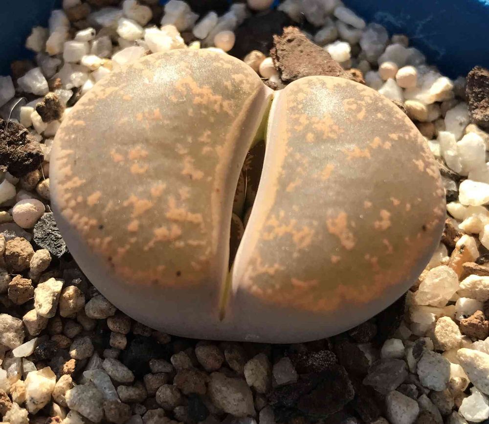 リトープス 紫薫玉 窓が開いて来た 。中に2つ見えてる。