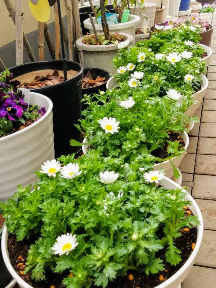 お庭でのノースポールさん達、のびのびだねぇ〜羨ましい💕