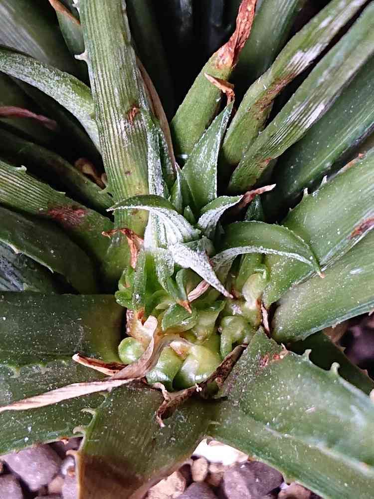 忘備録さんから頂いたアガベをupしました。1つ🌱が、葉っぱが変色して閉じています。もし良かったら見てもらえないでしょうか?お忙しいのにすみません(*_ _)ペコリ