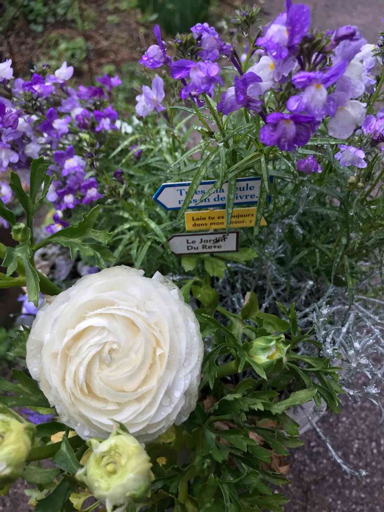 こんばんは🌃白いラナンキュラスと紫のお花のコラボ(о´∀`о)💜めちゃカワな組み合わせがステキすぎですー😆💖