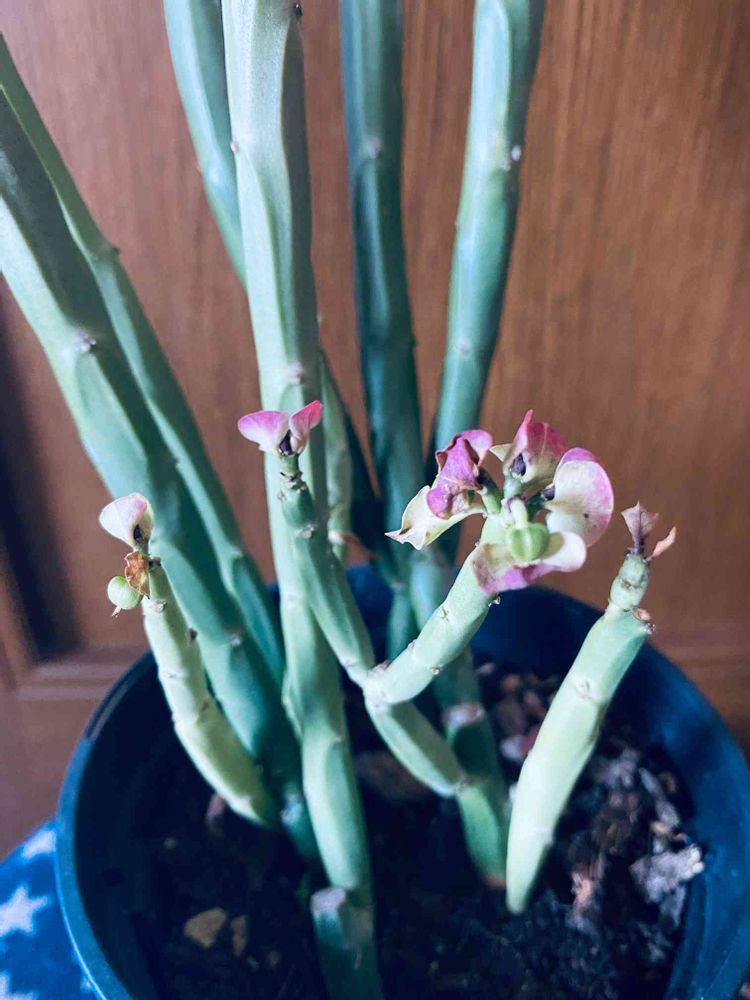 新人さんのユーフォルビア フォスフォレアにお花が咲いてます🌸
