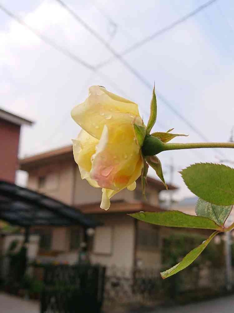 以前の、ちょっとピンクのバラが、咲きました‼️外側の、花びらだけがピンクです。不思議だなぁ⁉️