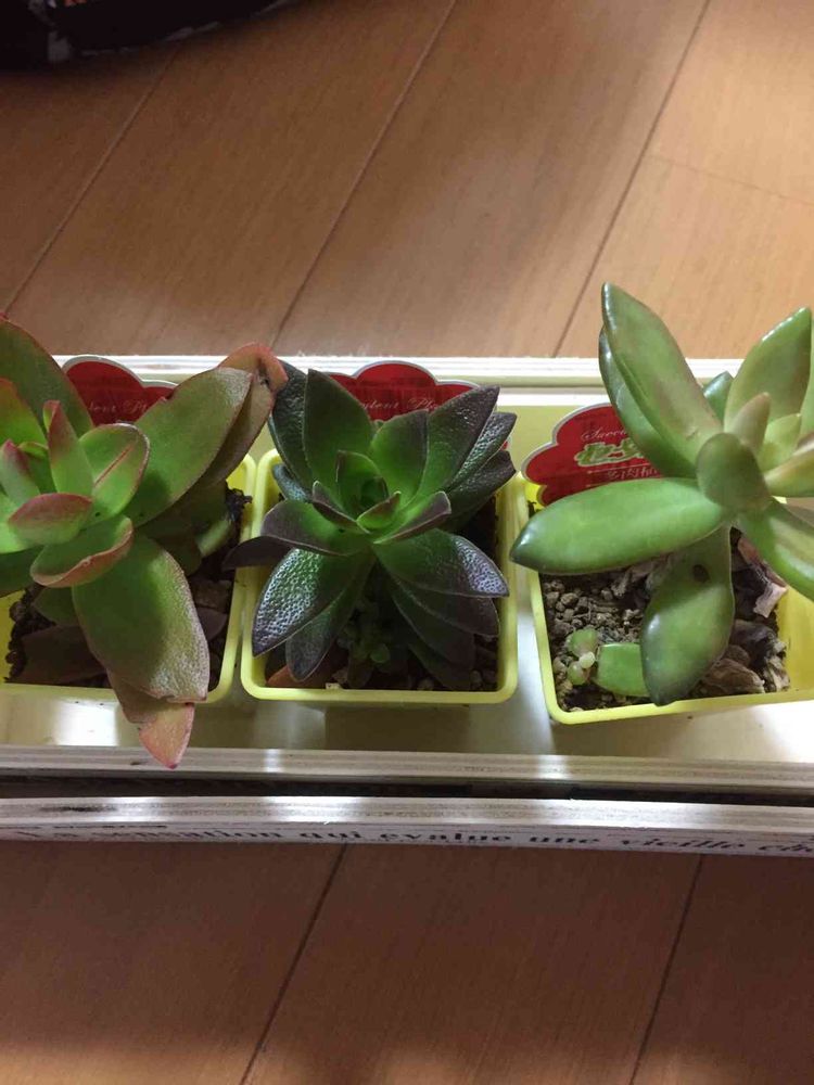 ダイソーに多肉ちゃん入荷してたけど、ほとんど売れてたので、これだけ購入(≧∇≦)左二つがわからない(›´-`‹ )火祭りでしょうか?(´・×・`)
