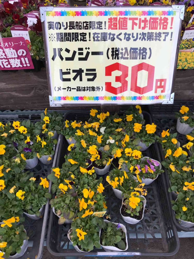 安い〜ですね〜❣️特にビオラ→黄色が大好き💕なので、爆買いして→空いている処→全てに植えたい→B ut..行けるはずが無い💦