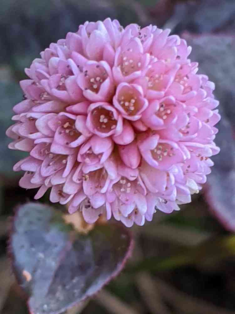 ヒメツルソバ。蕾の時は、コンペイトウみたいで、かわいい💞。不思議よねえー、小さい花が集まって綺麗な球体になって。