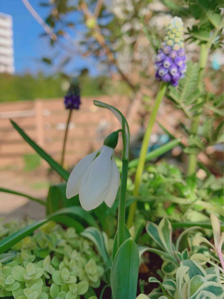 スノードロップは、一つだけ咲きましたが、ムスカリは、咲いた苗を買ったものです😆