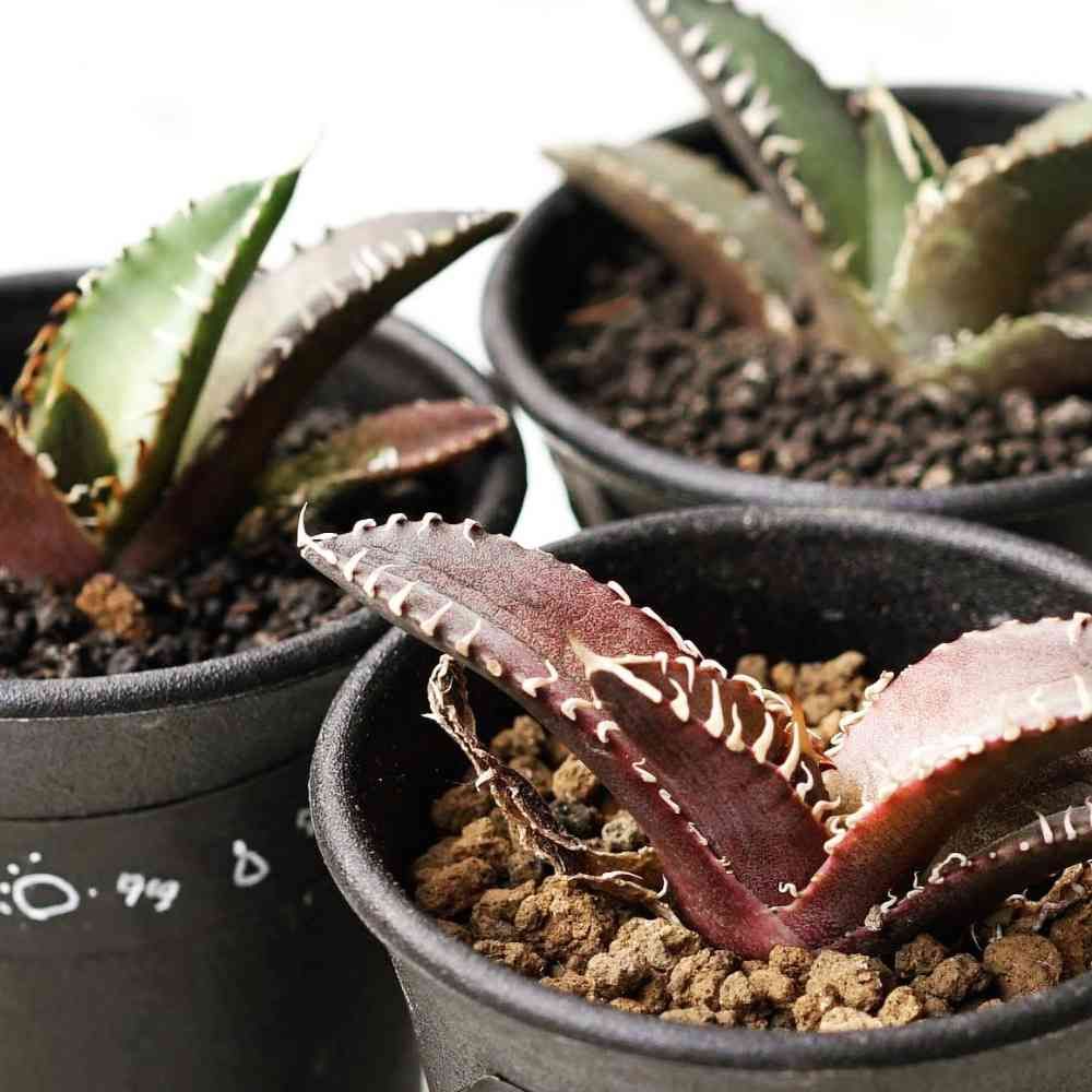 2018年頃から日本で出回るようになったチタノタ Agave titanota の新しめのバリエーションで葉っぱ本体が赤く色づくのがその名の由来。…のはずが、ふだんの顔はあまりチタノタと変わらないので「爪が豪快なタイプ」と思われているレッドキャットさん。本気で赤くしようと思ったらどんな条件なの?ということで実験して確かめてみた記事を掲載しました。