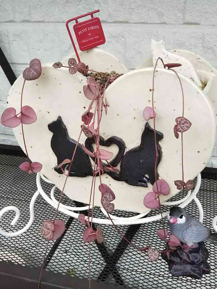 陶芸で作ったハート♡の猫鉢😺にハートかずら❤️