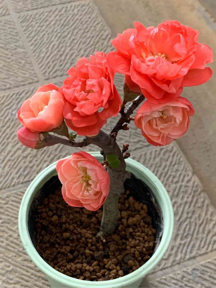 いい色🌸のボケの花が咲きましたね❤💓
