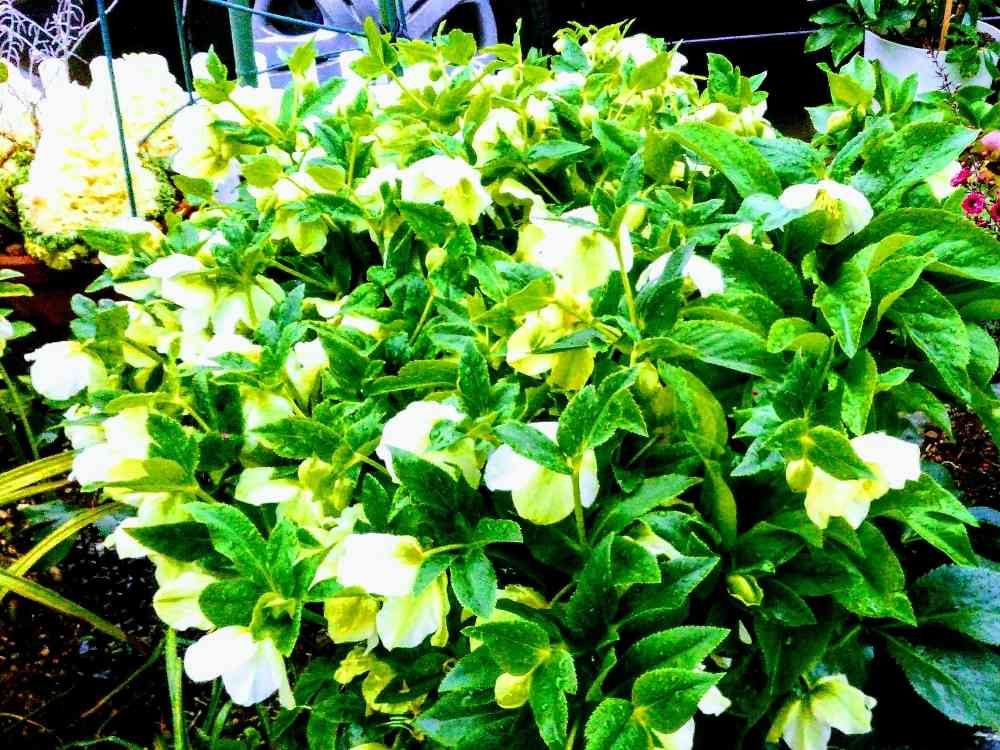 散策の通り道の花壇に、クリスマスローズが、植えられていました。