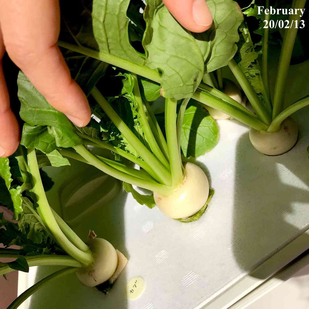 昨日のかぶ、測ってみたら4センチくらいでした。5センチになったら収穫します✨それまで我慢〜(#•v•#)