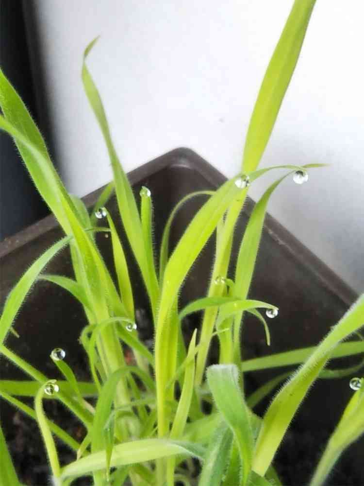 昨日霧吹きした💧が葉先に水滴を残してた✨