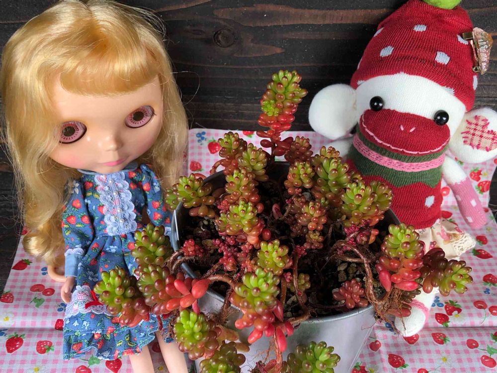 いちごのソクモン、可愛い〜💕と思ってたら、ブライスちゃんの服もいちご模様なのね❣️
