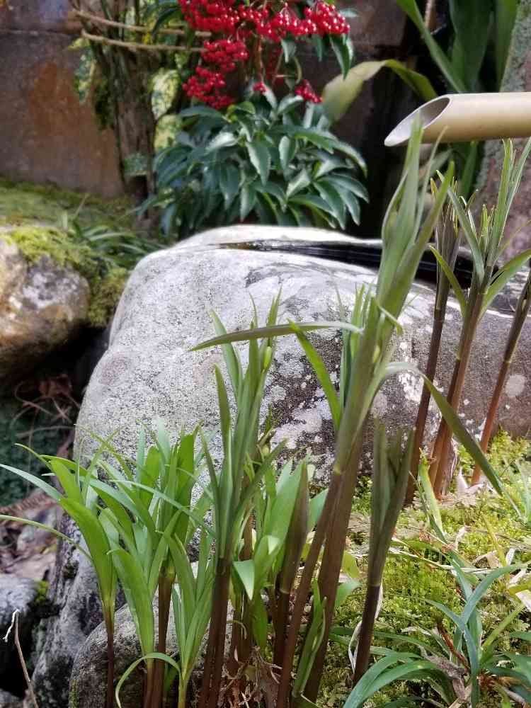 例年はまだ雪の下に眠っている貝母「編笠百合」の新芽がこんなに大きくなってきました。