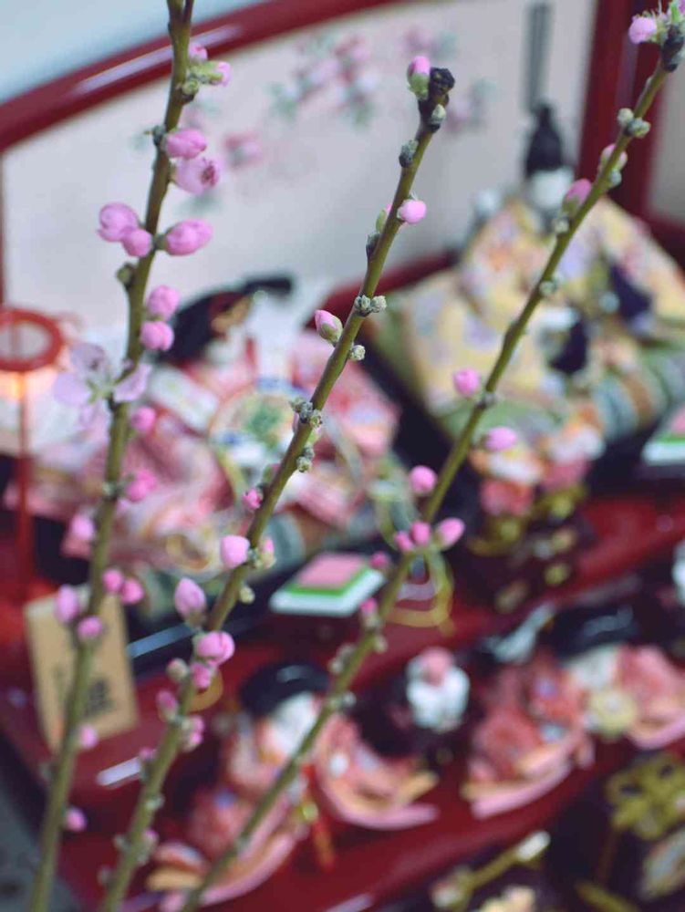 桃の花を買ってきたので、ようやくお雛様飾りました🎎