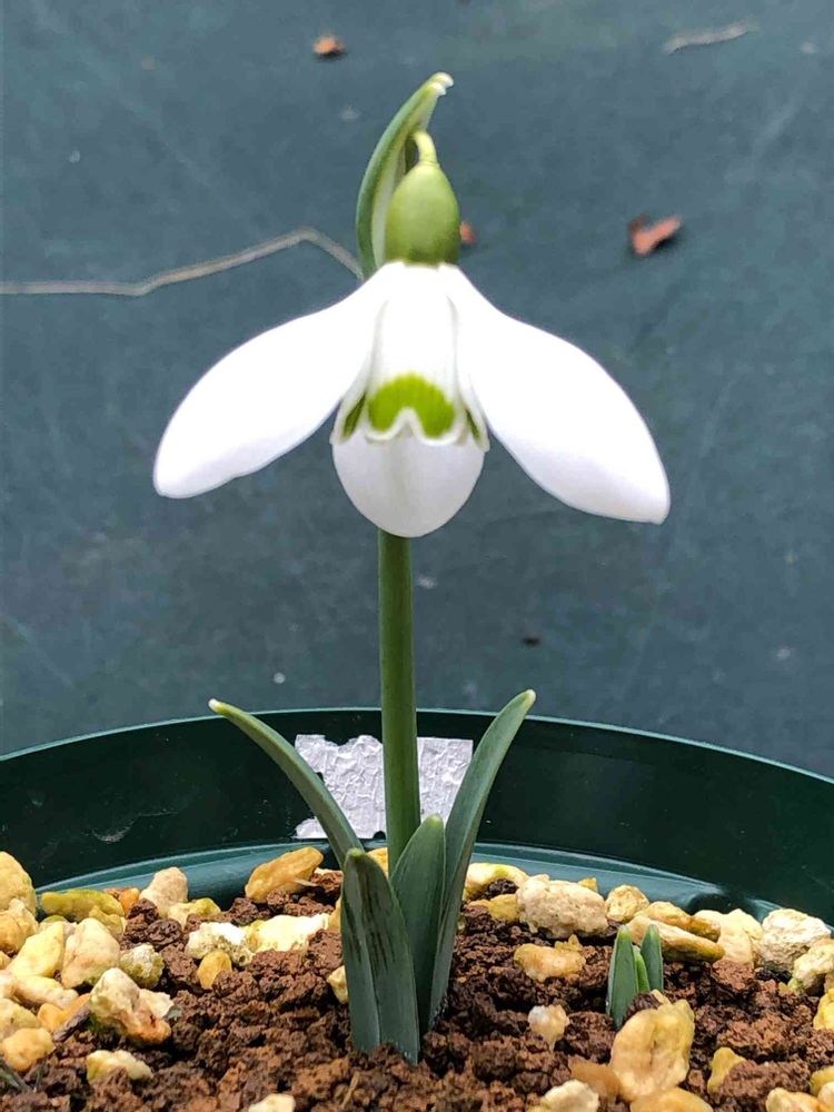 1月19日に地表に芽がのぞいてから、やっと開花しました。