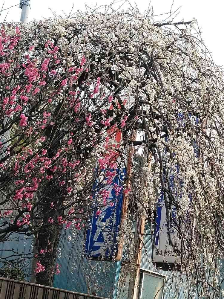 垂れの白梅と普通の紅梅、二本が並んでいます😽