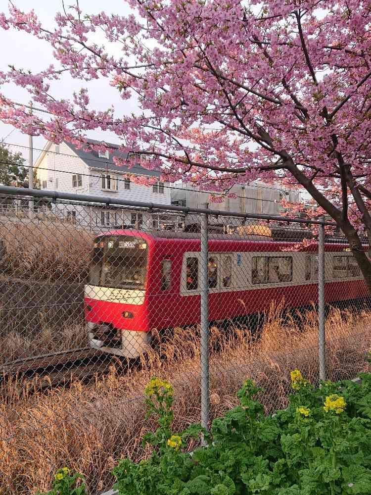 三浦海岸の河津桜と京急電車のコラボです😃💕