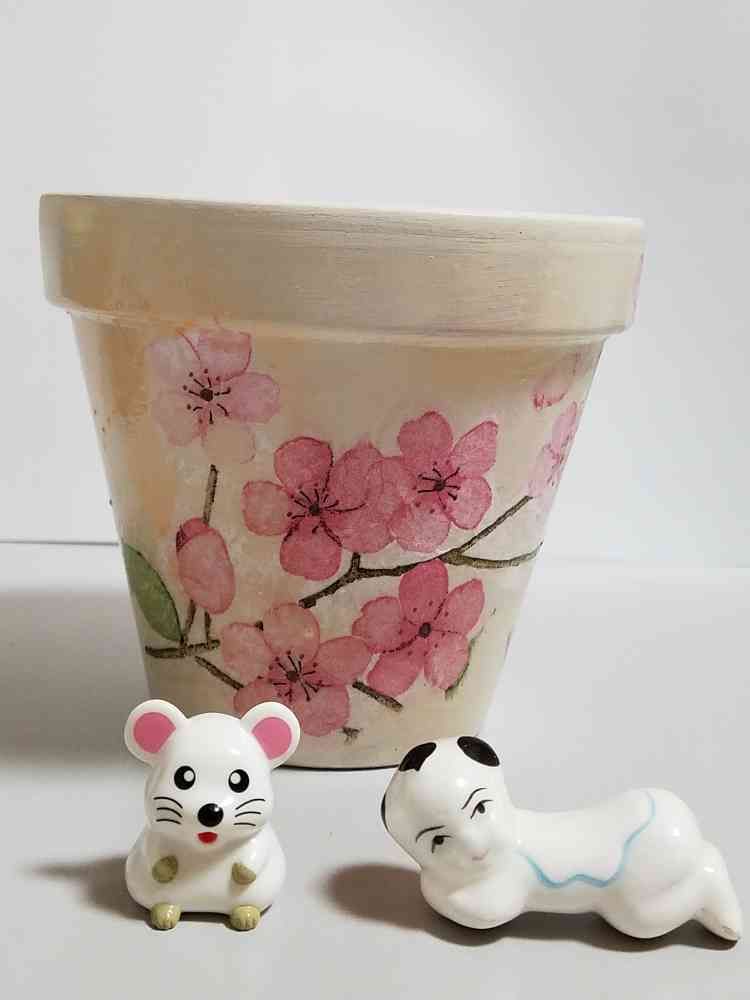 桜柄のリメ鉢🌸 色んな作品が どんどん増えていくんでしょうね✨✨