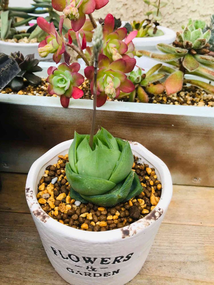 なんだ~😂🤣😂後ろの薄化粧が被ってるじゃ🤣😂🤣ハオルチアの花🌸かと思った。😂🤣😂
