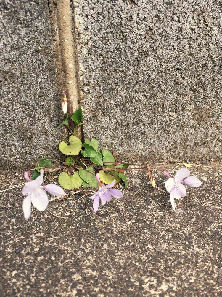 家の駐車場のコンクリートとブロックの隙間からすみれが咲いていてびっくりしました。何処からか種が飛んできたのかな?