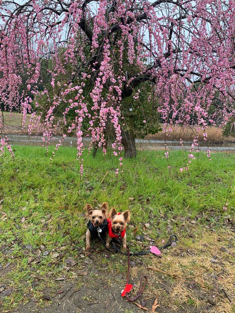 枝垂れ梅と我が家の姫たち